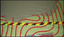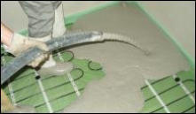 Dieses Material ummanteln durch seine Fließfähigkeit die Fußbodenheizung vollständig